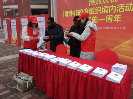 2017年12月28日,《境外非政府组织境内活动管理法》实施一周年庆祝活动在taptap点点体育汀香园前坪顺利开展。