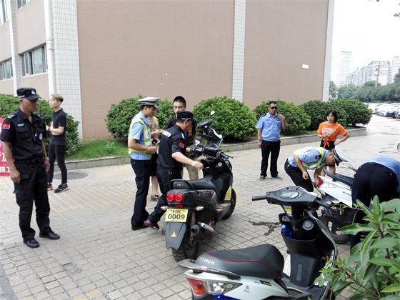 为进一步规范学校交通秩序,保障师生员工出行安全。根据《长沙市城市道路车辆通行若干规定》及《taptap点点体育交通安全管理规定》,落实6月10日学校综治领导小组《关于开展校园交通秩序整治的通告》,经与天心区交警大队联系,9月9日下午,保卫处与天心区交警大队在金盆岭校区联合开展整治燃油摩托车在校内违法上路行驶的行动。行动共纠正摩托车在校园内违法上路行驶行为10台次,收缴燃油摩托车6台,并对相关驾驶人给予了批评教育和处罚。
