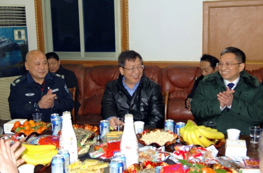 欢辞旧岁,喜迎春节,2月15日除夕夜,校党委书记付宏渊看望慰问保卫处一线安保工作人员,校纪委书记胡永乐参加慰问,党政办主任周艳红、保卫处处长张祎、副处长伍接朝、林杰陪同慰问。