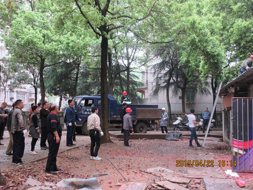此次拆违面积340平方米,虽然在拆除过程中遇到较大阻力,但我处克服困难,在地方政府部门的支持下,拆违工作程序合法,措施得力,效果显著,维护了金盆岭校园秩序、美化了校园环境。