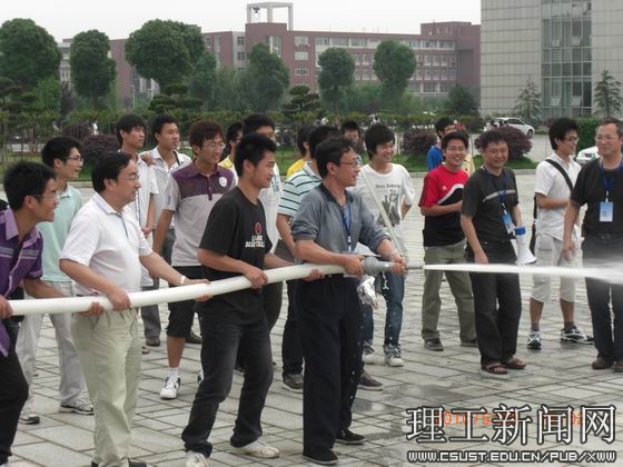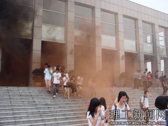 本次活动邀请了长沙市天心区公安消防大队领导和省消防协会专业人员进行了应急疏散、逃生知识讲座。讲座结束后,开展了应急疏散、逃生演练,并燃放了烟雾弹。面对滚滚浓烟,学生们情绪稳定、模拟逃生逼真,有的用毛巾、衣袖捂住口鼻、头戴防毒面具,迅速、有序、安全地撤离出现场。随后保卫人员现场讲解、示范灭火器材的使用方法,并组织学生开展了现场灭火演练,在熊熊大火面前,文先明副校长和同学们一起参与了灭火实地操作体验。