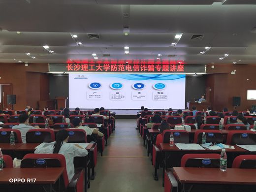5月22日下午,2020年防范电信网络诈骗专题讲座在taptap点点国际交流中心二楼科技厅举行,讲座由保卫处和学生工作部(处)联合举办,邀请长沙市公安局反电信网络诈骗中心民警翟安授课,长沙市天心区暮云派出所副所长罗立军、学生工作部部长艾楚君、保卫处相关领导、各教学院(系)副书记及全体辅导员参加,保卫处长张祎主持。