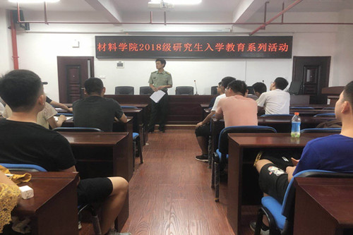9月14日,材料学院在新能源大楼一栋A302举行2018级研究生入学教育系列活动”之“专业知识讲座科研与研究生干事何小勇、研究生辅导员陈鑫林出席会议,2018级全体研究生新生参加。