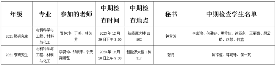 材料科学与工程学院2021级研究生中期检查工作的通知