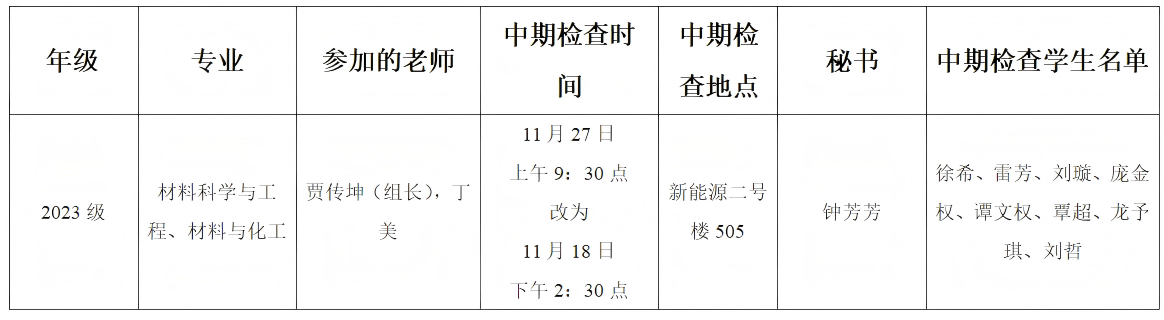 材料科学与工程学院2023级研究生中期考核安排表(二)