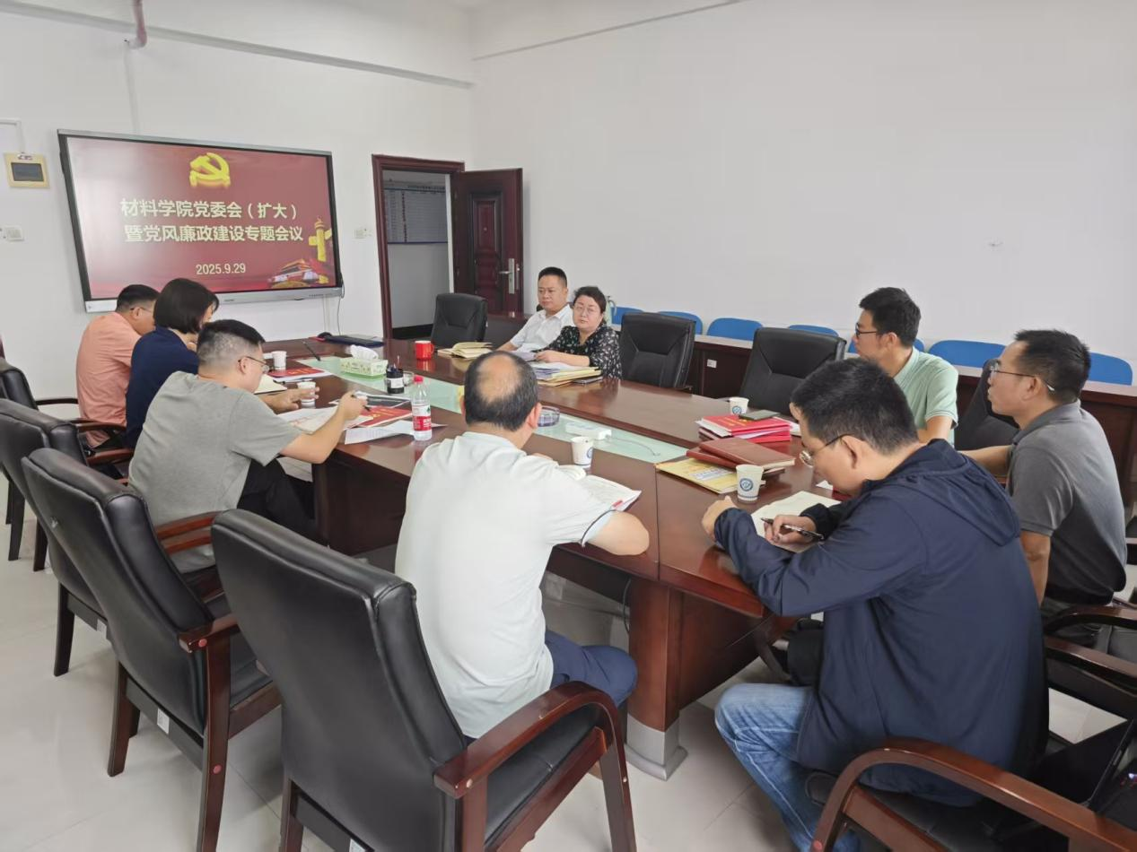 为持续深化全面从严治党,进一步压紧压实党风廉政建设主体责任,2025年9月29日上午,材料学院在新能源大楼1-924会议室组织召开党风廉政建设专题会议。学院党政领导班子成员、各基层党支部书记参加会议。