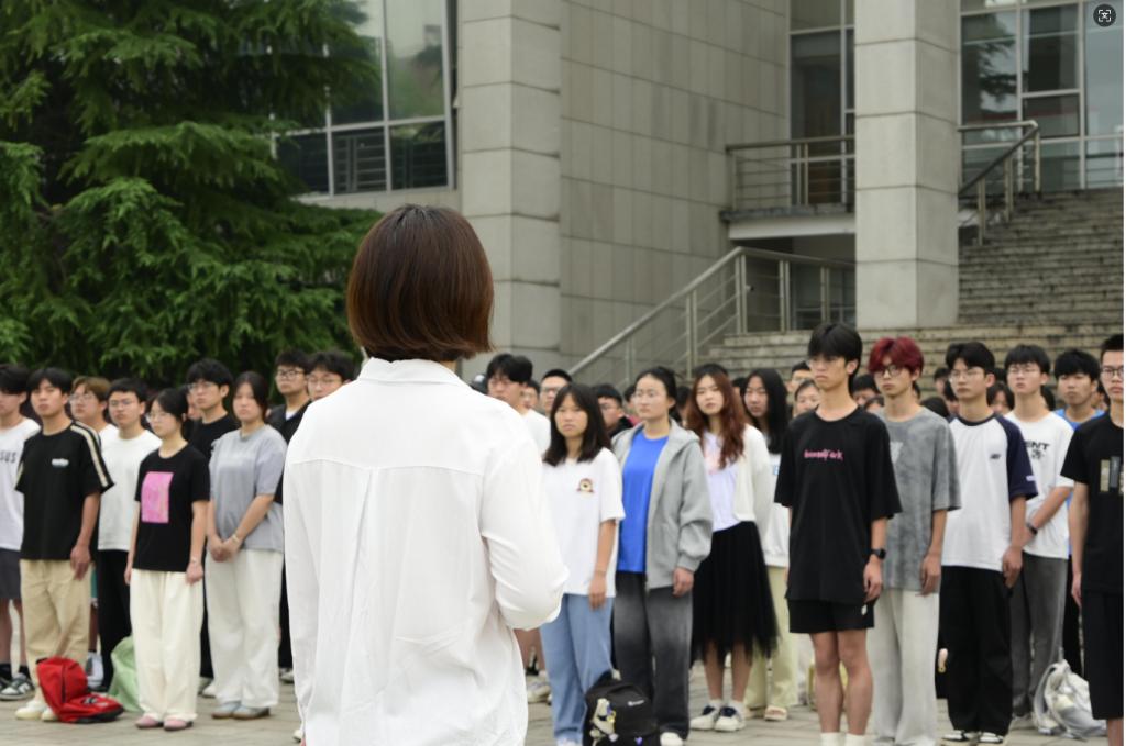 2025年6月3日清晨,材料学院在图书馆前坪隆重举行升旗仪式。学院党委副书记邵巧艳、辅导员谢易真、谭方林及全体2024级新生齐聚图书馆前坪,共同见证五星红旗在朝阳中庄严升起。