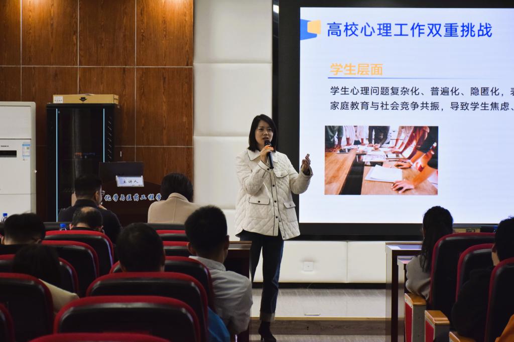 校心理健康教育中心主任易敏为与会教师作了题为《读懂“Z世代”青年,做学生心理健康成长的守护者》的专题培训。她从心理画像、问题识别与干预指南三个方面解析学生心理状态,帮助教师识别常见心理问题,并就如何区分正常与异常心理、开展初步干预提供了实用指导。