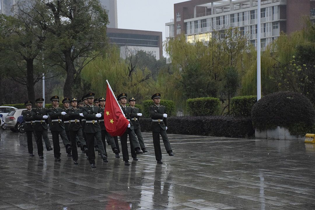 升旗仪式开始,由国旗班成员护旗至升旗台前,随后,在蒙蒙细雨中、在嘹亮的国歌声中,全体人员目视着五星红旗冉冉升起,并进行了庄严的宣誓。本次升旗仪式既是对同学们的爱国主义教育,也在提醒同学们要勇担青年使命,做时代的弄潮儿,以自己的实际行动为祖国建设添砖加瓦。