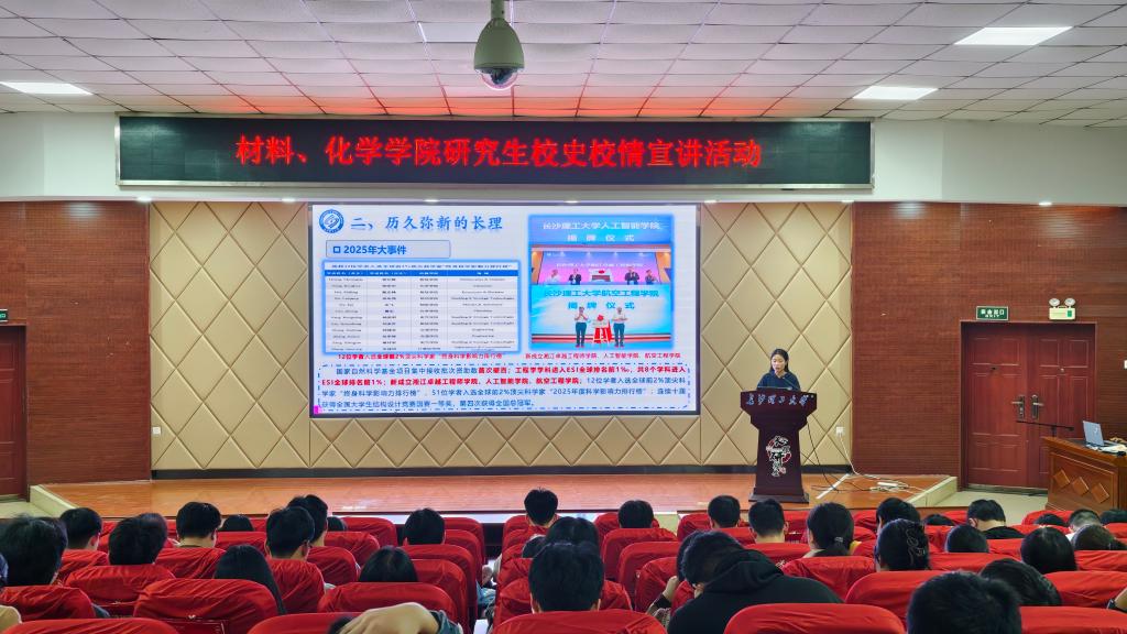 10月29日19:00,材料科学与工程学院联合化学与医药工程学院于文科楼A200报告厅举办校史校情宣讲会,面向学院2025级研究生新生介绍taptap点点体育发展历程,并开展互动。