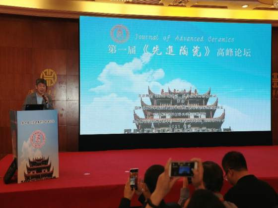 开幕式结束后,由景德镇陶瓷大学期刊社社长罗凌虹主持,中国科学院金属研究所学报文献中心主任罗东先生、中国科学院上海硅酸盐研究所学报编辑部主任李效民先生、Journal of Advanced Dielectrics 执行主编魏晓勇先生、北京科技大学期刊中心主任季淑娟女士以及清华大学出版社期刊主任主任陈禾先生分别结合各自所在单位期刊工作介绍了国产材料类学术期刊的发展状况。紧接着,由中国科学院金属研究所王京阳研究员主持,航天材料及工艺研究所周延春教授、深圳大学陈张伟教授、景德镇陶瓷大学沈宗洋教授、中国科学院宁波材料技术与工程研究所黄庆教授分别结合高熵陶瓷、陶瓷3D打印、储能陶瓷及三元层状陶瓷等热点研究方向做了精彩的大会报告。