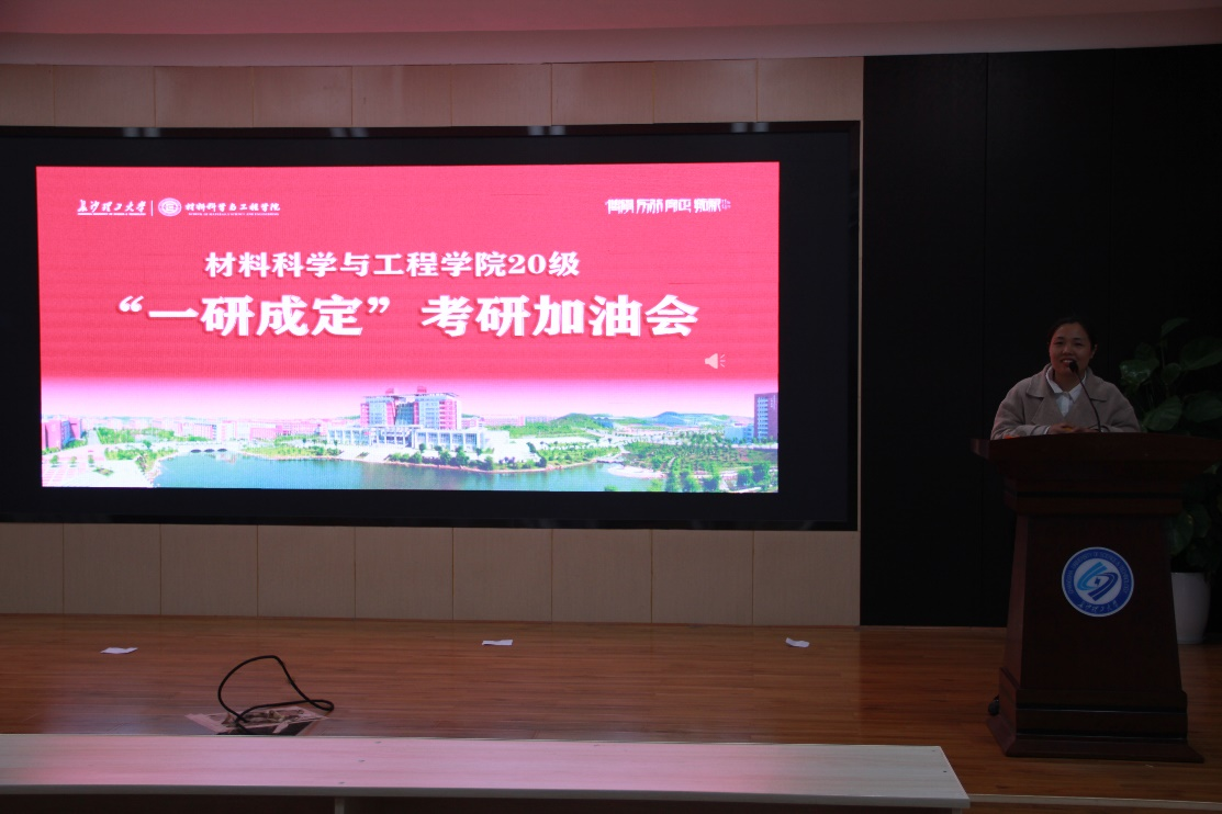 接下来,材料科学与工程学院2020级辅导员谢易真发言,鼓励同学们调整心态,坚持到底,勇赴考场,梦想成真。并通过视频送上学院教师手写明信片和上岸学子的真诚祝福与鼓励,在一片欢声笑语中为在场学子打下必胜信念的强心针。