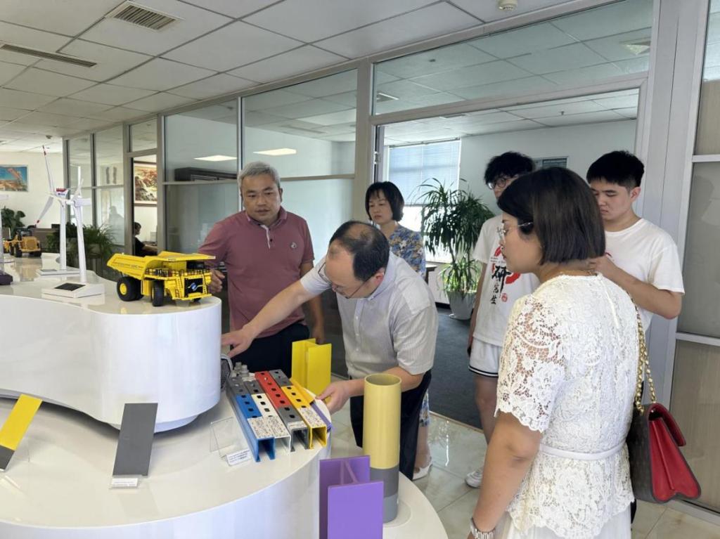 在湖南省德谦新材料有限公司,公司总经理危德博带大家观摩了公司文化墙,以“我是谁”“我们能做什么”“我们做了什么”为主要内容讲述了公司的价值理念、技术团队、核心业务、主要产品及应用领域等,并对展台展品进行重点介绍。座谈环节,危德博结合公司产品技术在交通桥梁、能源电力、装备制造、基础设施等领域的成功案例,讲述了公司持谦尚德、创新求索,精心做材料,匠心做施工的故事,希望在科学研究、人才培养、实习实践等方面深化校企合作。
