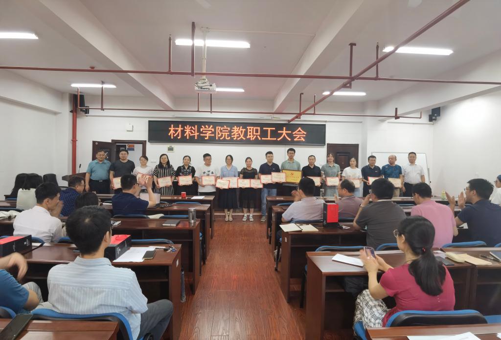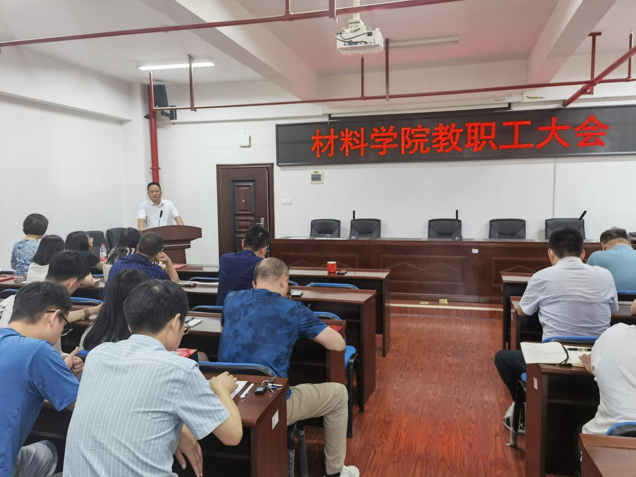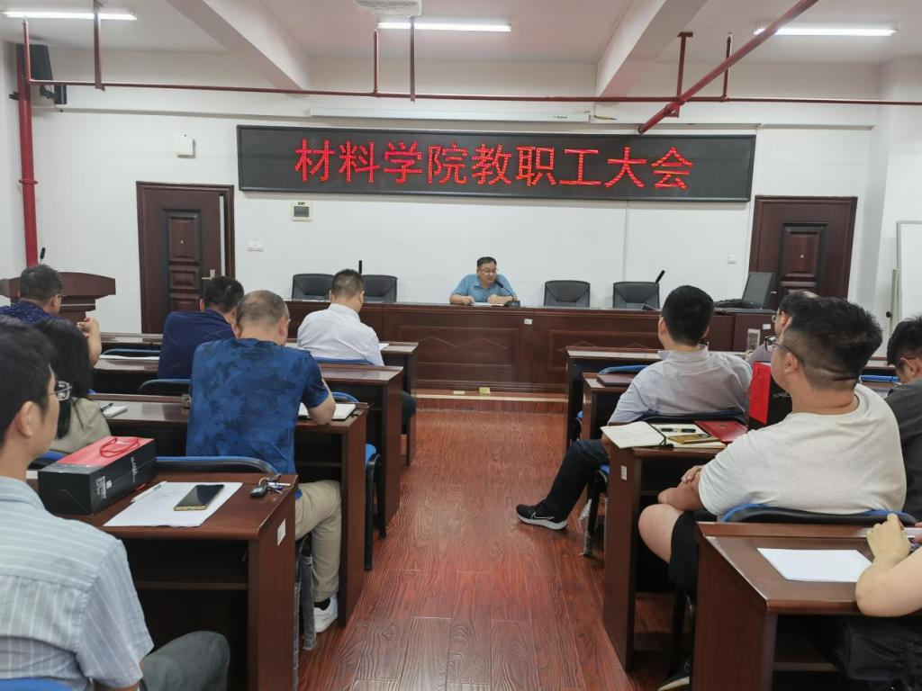 2024年7月12日下午,材料科学与工程学院在新能源大楼1-302召开全体教职工大会,进行半年工作总结并对部署下阶段重点任务。全体院领导出席,全体教职工参会,会议由院长毛卫国主持。