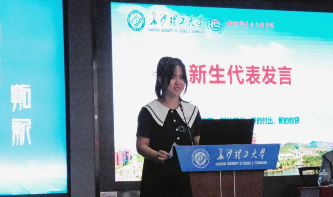 新能源2402班生嘉懿作新生代表发言,她怀揣着对材料专业的热爱与追求,选择了这个专业,代表全体新生们表达了接力奋斗续写崭新篇章的心声,不畏挑战勇于追梦的勇气。