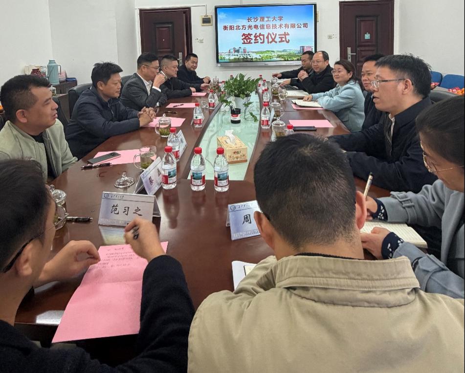 11月21日,taptap点点体育与中国兵器工业集团衡阳北方光电信息技术有限公司(以下简称“衡阳光电”)在云塘校区签署合作协议。材料学院院长毛卫国、党委书记郑延恒、科技处副处长卿志和等热情接待了衡阳光电董事长娄颖、副书记储世玉等一行六人。
