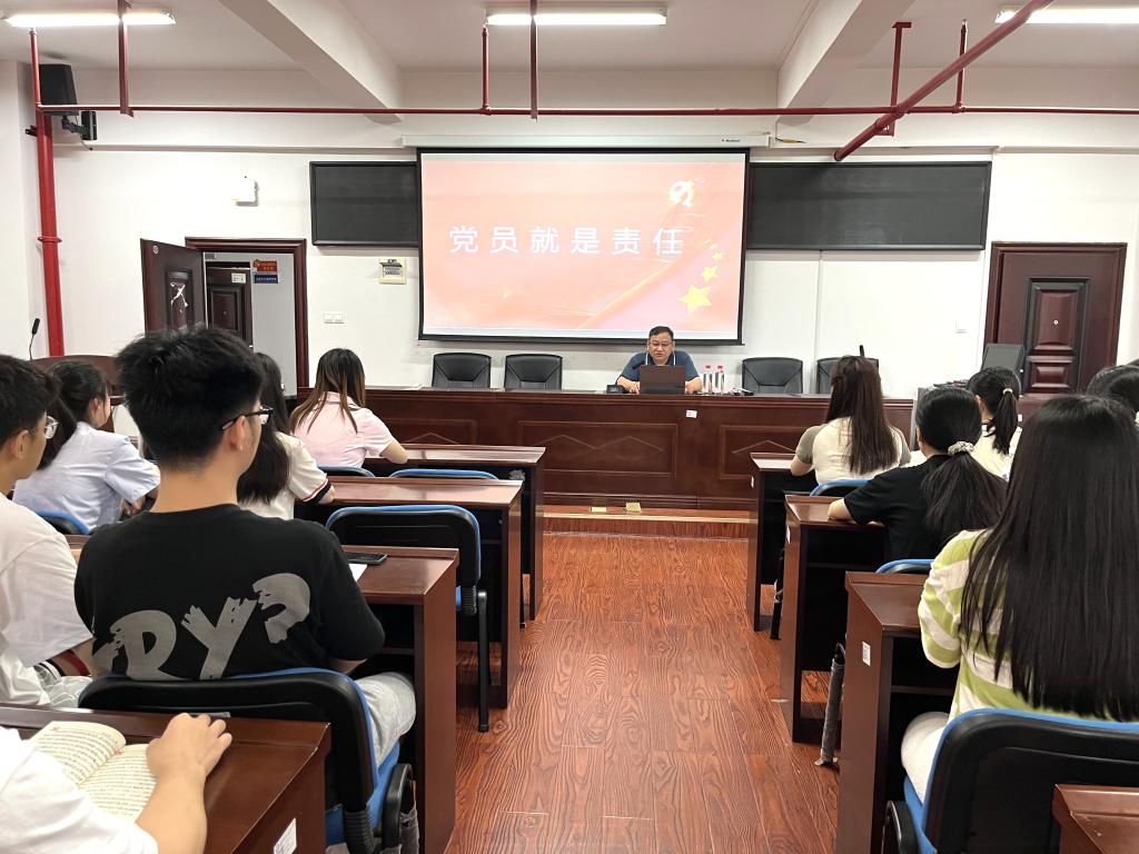 唐超文书记以《共产党员的责任》为题,分别从“深入理解共产党员的称号”、“怎样履行好党员的责任”、“党员不履行责任的危害”和“共产党员要有责任担当”四个方面强调了中国共产党党员的责任和担当意识,鼓励毕业生党员们积极投身社会、服务人民的热情和决心,表达学院党委对毕业生党员们的深切期望和祝福。