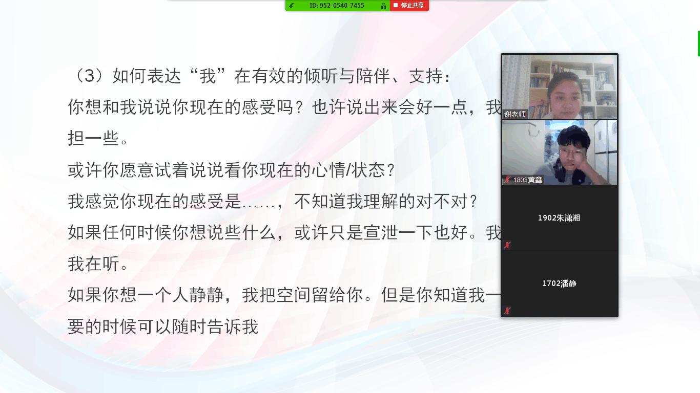 本次网络培训会强调了朋辈心理互助员在疫情期间工作的重要性,让朋辈心理互助员了解到在疫情期间如何开展工作,提高了互助员们的责任意识和业务能力,为朋辈心理互助员在疫情期间发挥作用,帮助同学们缓解情绪压力打下了良好的基础。(图/谢易真 文/谢易真 审/唐青)