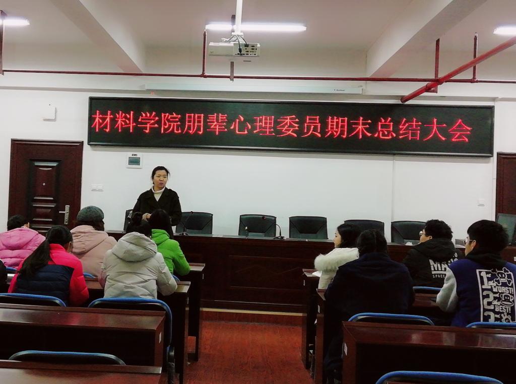 1月8日17:00,材料学院召开朋辈心理互助员期末总结大会。材料学院党总支副书记唐青、学院心理辅导员谢易真以及学院心理委员、朋辈心理互助员参加了本次会议。