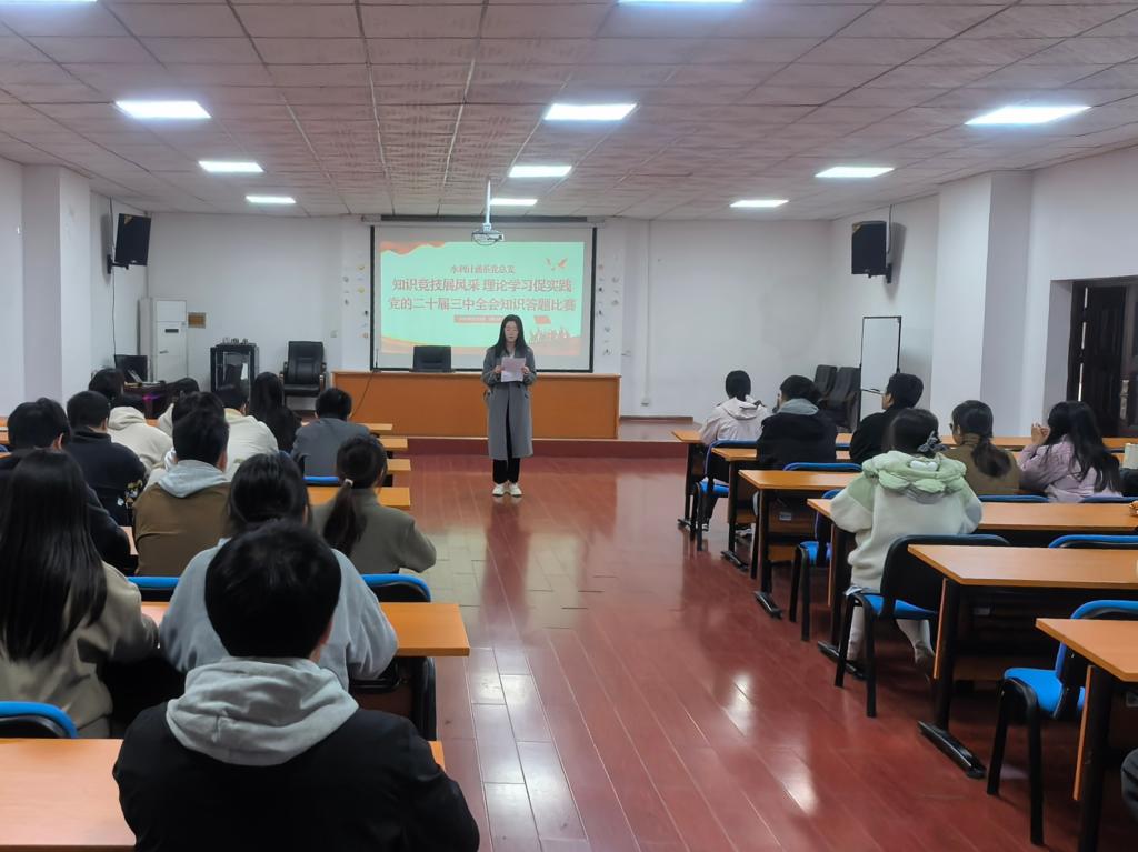 为深入学习贯彻党的二十届三中全会精神,提升党员政治素养与理论水平,12月3日,水利计通系党总支在二教101举办党的二十届三中全会知识竞赛。水利计通系党总支书记李琳老师、第二学生党支部书记杨志凯老师、党总支委员张纯源老师出席本次活动。活动由尹姿君主持。