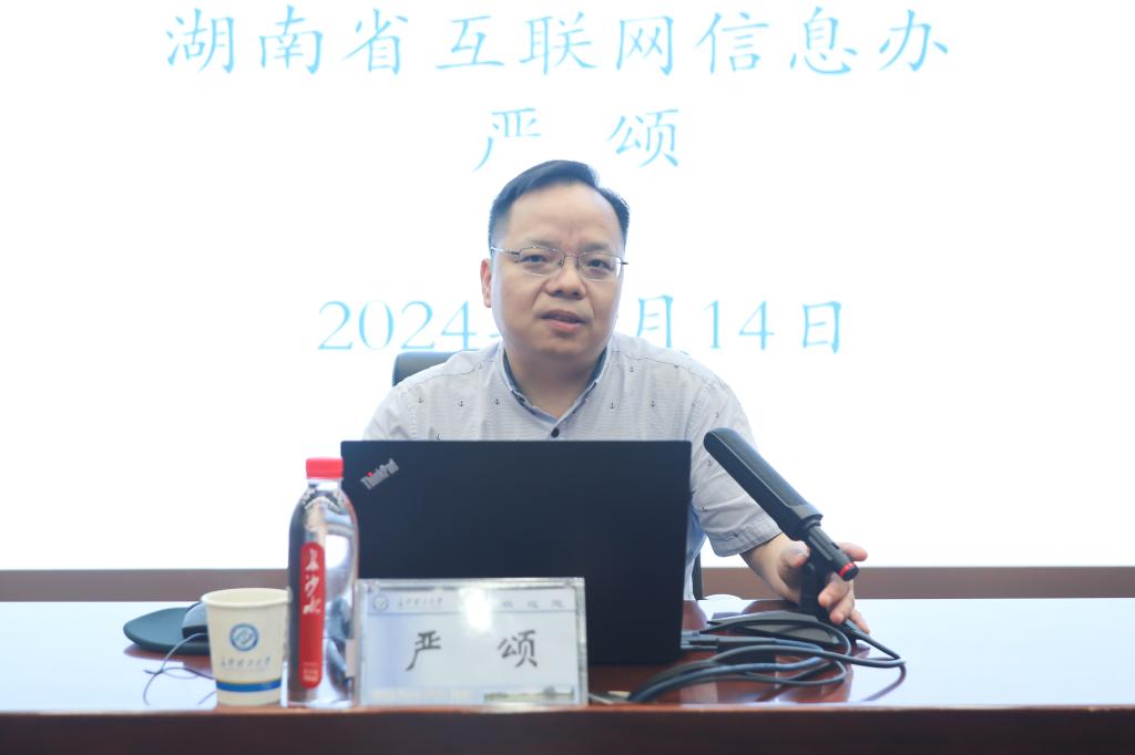 6月14日,taptap点点在云塘校区图书馆报告厅组织新任职处级干部任职能力提升专题培训班、机关科级干部培训班第五场培训。中共湖南省委网信办网络执法与监督处处长严颂应邀作专题讲座。全体新任职处级干部和机关科级干部参加培训。培训由校党委委员、宣传部部长方琼主持。