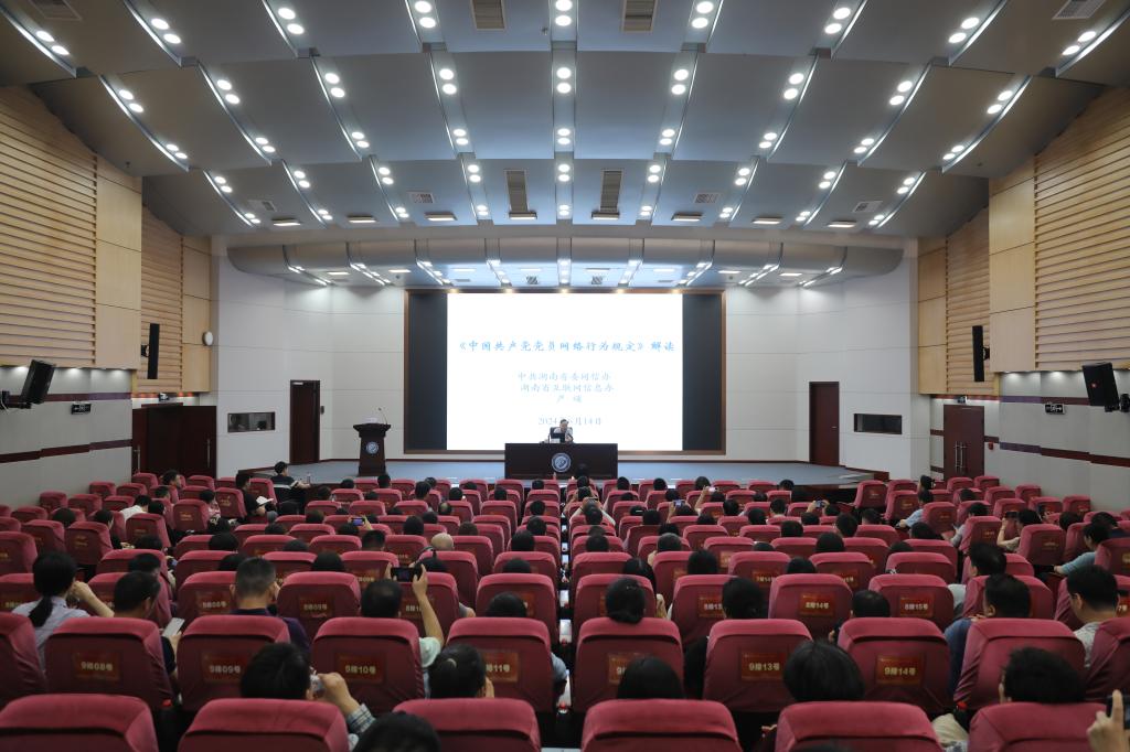 讲座中,严颂详细解读了《中国共产党党员网络行为规定》(以下简称《规定》)的出台背景、主要内容和落实要求。他引用大量详实的案例和数据,详细分析了网络正能量的传播策略和注意事项,清晰梳理了不同网络行为的相关规范和具体要求。他指出,出台《规定》是贯彻落实党管互联网原则、落实意识形态工作责任制的实际需要,是发挥党员模范带头作用、以良好党风推动形成良好网络生态的内在要求,是走好网上群众路线、巩固深化党群关系的重要体现。党员干部自身要强化认识,提高站位,坚持正确的政治方向,争做网络意识形态安全维护者;要严于律己,做好表率,执行更加严格的政治、作风和纪律要求,坚决抵制各类非法、不良的网络行为;要心存敬畏,严守红线,自觉接受组织和群众的监督。