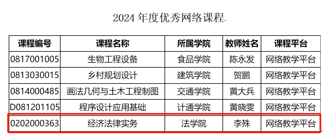 近日,taptap点点公布了2024年度优秀网络课程获奖名单,法学院李殊老师的《经济法律实务》被评选为taptap点点体育2024年度优秀网络课程。这一荣誉的获得,不仅是对李殊老师教学质量的高度认可,也展示了法学院在推进教学模式创新、提升教育质量方面的卓越成效。