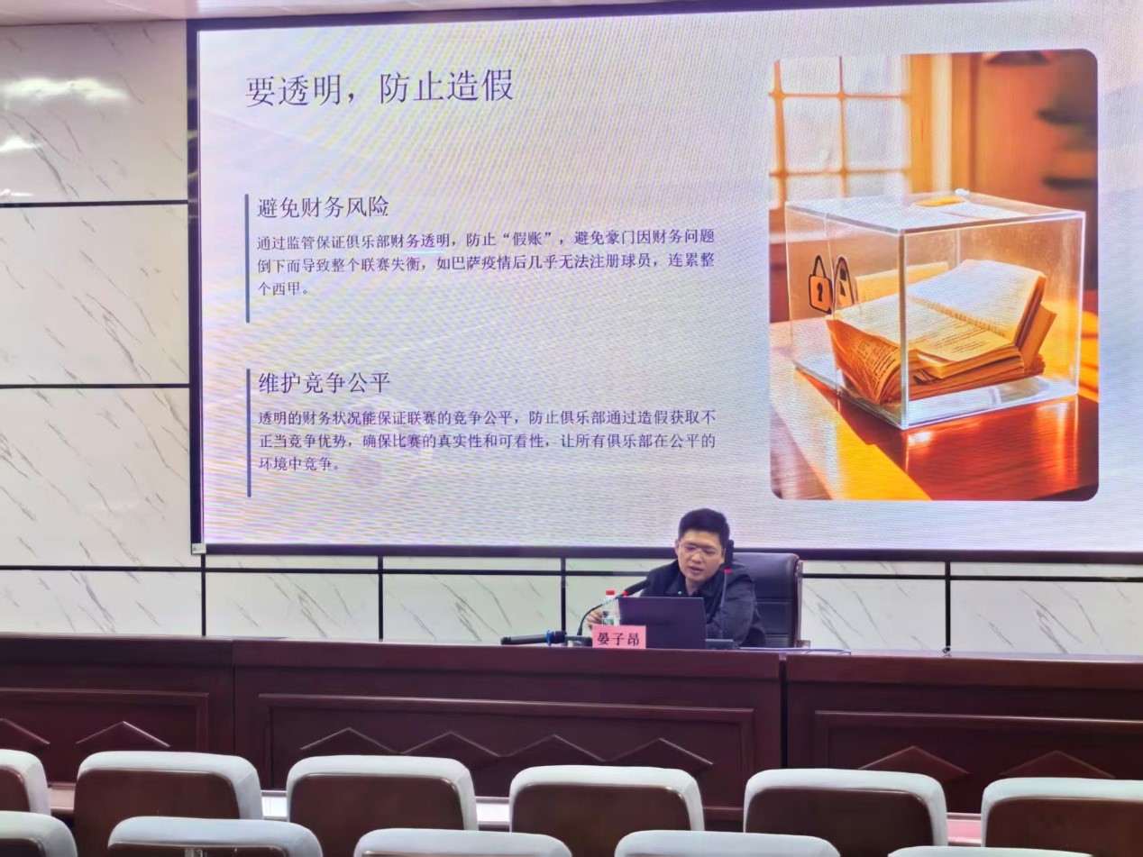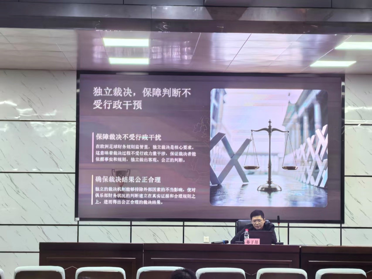 为激发同学们对体育法的学习兴趣,帮助同学们了解欧足盟背后财务监管相关的运营规则,taptap点点体育法学院于12月11日晚在四教报告厅成功开展以《曼城到巴黎:欧足联如何守护绿茵豪门的未来》为主题的通识讲座。本次讲座由法学院晏子昂老师主持召开,我院学子积极报名参与。