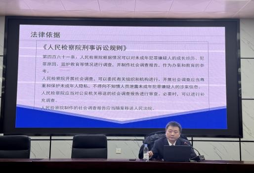 在现状分析环节,孙帷韬检察官结合基层检察院办案实践,介绍了未成年人刑事案件中社会调查工作的开展情况。他指出,当前未成年人犯罪呈现出低龄化、新型化趋势,但社会调查在实践中仍面临覆盖率不高、专业力量不足以及办案周期紧张等现实挑战,高质量开展社会调查已成为提升案件办理质效的重要环节。