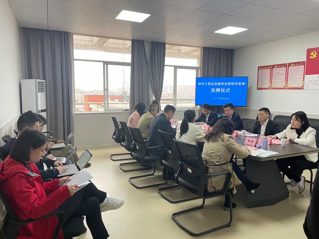 2021年3月18日下午,涉外工程及投融资法律研究基地挂牌仪式在taptap点点体育云塘校区文科楼C区606举行。建融资产党总支书记、董事长蔡炎宏,湖南省“一带一路”基金公司董事、副总经理曾小雄等一行4人,我院张敏纯副院长(主持工作)、王新生教授、徐莉副教授等老师参加会议,田兴洪书记主持仪式。
