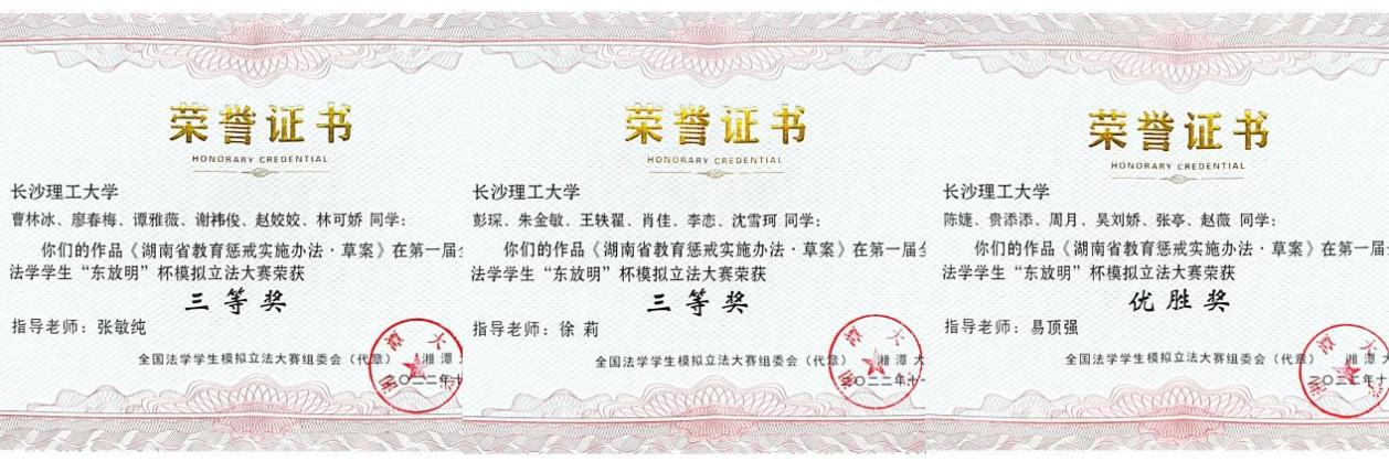 2022年11月5日,历时近六个月的赛程,全国首届法学学生模拟立法大赛在湘潭大学永雄楼胜利闭幕。在本次比赛中,我院共三支队伍获奖,张敏纯老师指导的曹林冰团队、徐莉老师指导的彭琛团队荣获三等奖,易顶强老师指导的陈婕团队荣获优秀奖。