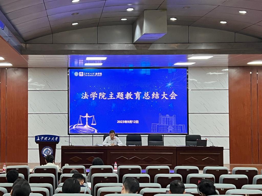 912日下午,法学院在金盆岭校区第4教学楼一楼报告厅召开学习贯彻习近平新时代中国特色社会主义思想主题教育总结大会。学院全体领导出席会议,全院教职工参加总结大会。学院党总支书记田兴洪主持会议。