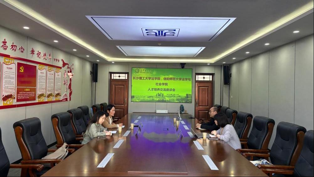 2026年3月11日,在金盆岭校区四号教学楼307会议室,信阳师范大学法学与社会学院院长古瑞华、刘文君老师一行来法学院,就法律硕士研究生人才培养进行调研交流。法学院副院长申纯主持会议,教师代表王寰、晏子昂参加交流。