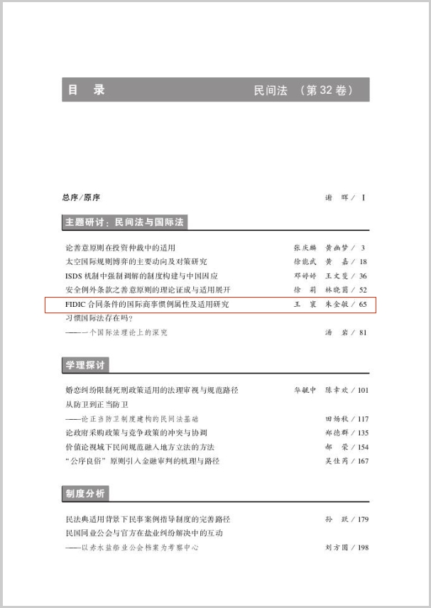 近日,taptap点点体育法学院副教授王寰在《民间法》(CSSCI来源集刊)2023年第2期发表论文《FIDIC合同条件的国际商事惯例属性及适用研究》。