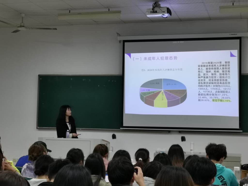 “在如今未成年人犯罪态势下,未成年人犯罪行为的分级处遇与专门教育值得我们关注”,5月19日湖南师范大学肖姗姗老师受邀,在综合教学楼开展以“罪错分级背景下专门教育的规范性建构”为主题的通识教育讲座。肖姗姗老师以未成年人犯罪典型案例出发,针对罪错未成年人分级处遇、罪错未成年人专门教育等问题,为同学们带来了精彩一课。