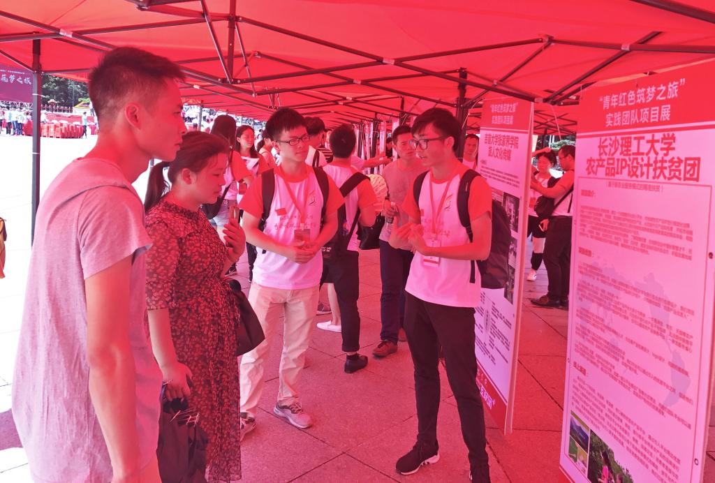 6月26日,第四届湖南省“互联网+”大学生创新创业大赛“青年红色筑梦之旅”活动在伟人故里——韶山毛泽东广场启动。来自全省各高校的120多支项目团队参加了启动仪式。设计艺术学院“农产品IP设计扶贫团”代表taptap点点参加了本次活动。