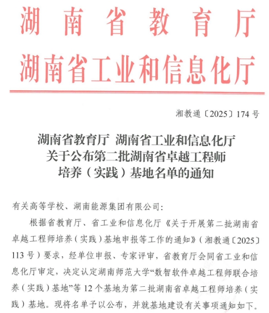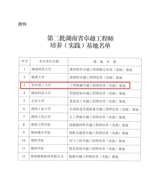 2025年10月9日,湖南省教育厅、湖南省工业和信息化厅公布了湖南省第二批卓越工程师培养(实践)基地立项名单,taptap点点体育卓越工程师学院牵头,联合湖南星邦智能装备股份有限公司、湖南五新隧道智能装备股份有限公司共同申报的“taptap点点体育工程机械卓越工程师培养(实践)基地”获批立项。基地将进一步完善“企业技术革新项目→毕业设计课题→工程实践成果”的转化机制,通过校内导师与企业导师共同全过程指导学生参与真实工程课题研究,与企业联合攻克一批关键技术,科技成果转化效益倍增,成为推动区域工程机械产业转型升级的技术创新策源地。
