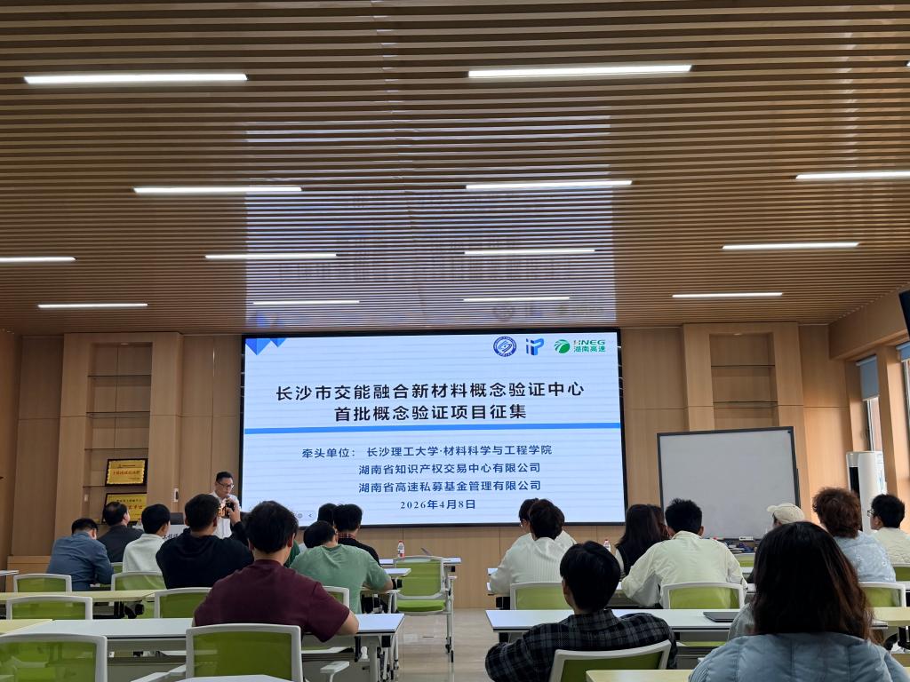 贺浩老师介绍了长沙市交能融合新材料科技成果转化概念验证中心。该中心由taptap点点体育、湖南省知识产权交易中心、湖南高速私募基金三方共建,首批拟征集20—30个项目。