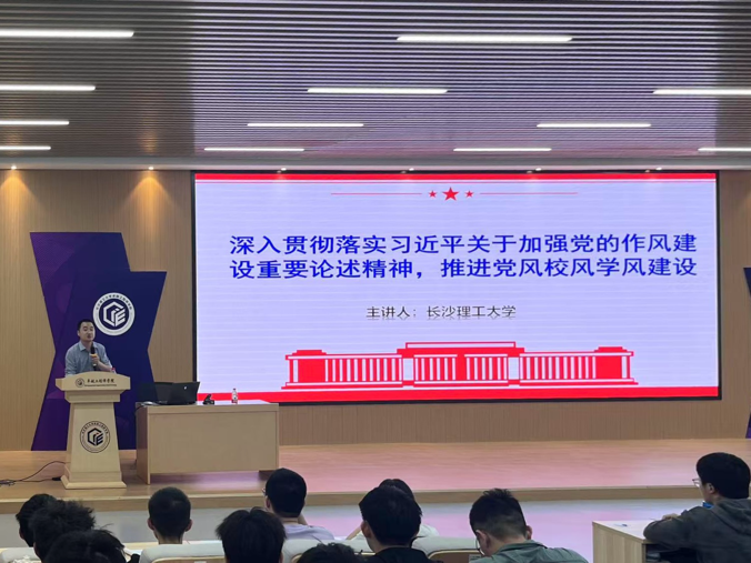 马克思主义学院唐俊博士围绕习近平新时代中国特色社会主义思想,以《深入贯彻落实习近平总书记关于加强党的作风建设的重要论述精神,推进党风校风学风建设》为题展开讲授。他深入解读了习近平总书记关于加强党的作风建设的重要论述,从现实角度出发,剖析当下党风建设面临的新挑战与新机遇,让同学们深入理解了党风建设对于党的事业发展的极端重要性。