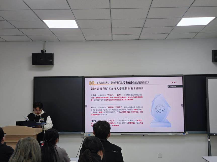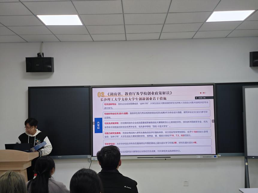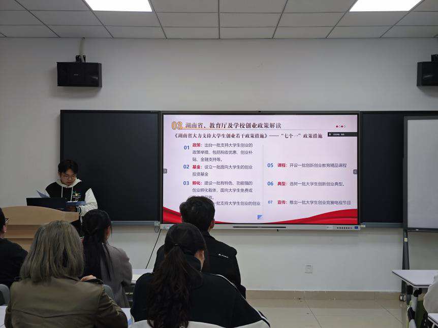 活动中,黄金同志详细解读了《湖南省大力支持大学生创业若干政策措施》的核心内容,重点介绍了“七个一”举措,并结合《支持大学生创业若干措施》《taptap点点体育支持大学生创新创业若干措施》等文件,系统阐释了“两直接”“三优先”“两配套”及“六可以”等具体政策。针对学生群体,我们详细介绍了政策中的“六可以”,包括:创业经历及成果可折算学分、可替代毕业论文(设计)、创业学生可休学创业、可灵活转专业、可参评评优评先、可推荐免试保研。此外,黄金同志还介绍了本校大学生创新创业园的相关扶持政策,以及第二届“金种子杯”大学生创业大赛的实施方案,鼓励同学们,特别是作为高年级党员,积极把握政策机遇,带动广大学弟学妹锤炼创新本领,勇于投身创业实践。