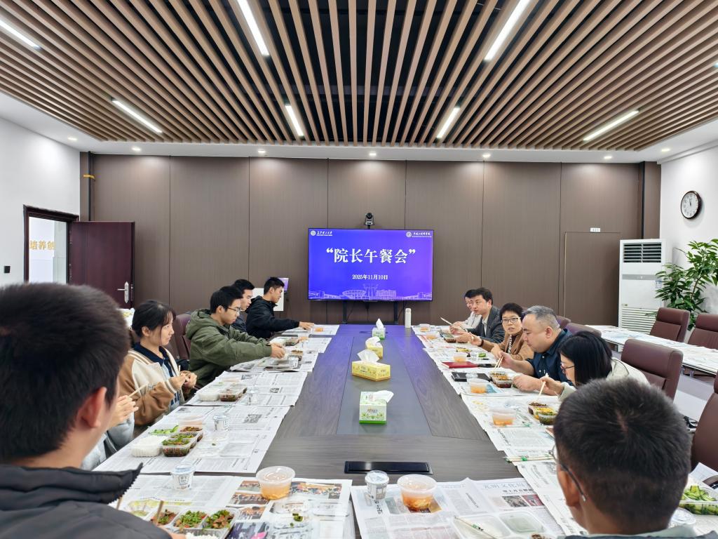 为倾听新生心声,解答学业困惑,助力学生成长,11月10日中午,学院在417会议室举行“院长午餐会”。院长韩艳、副院长吴钢出席,项目制课程建设负责人商雄军及教学、学工相关负责老师参加。2025级8名新生代表与领导老师们共进午餐,围绕课程学习与个人发展等议题进行了深入交流。