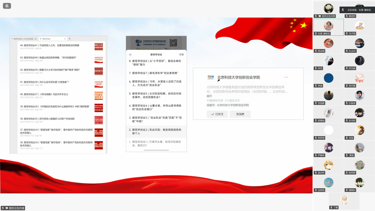 随后,党建辅导员潘枝花详细部署了党支部寒假“思创融合”主题实践活动。本次实践聚焦两大主线:一是开展《跟党学创业》专题研习,要求各小组深入挖掘党史中的创业元素及其对当代创新创业的启示,形成系统的文本梳理材料;二是推进“红色记忆、初心回响”老一辈工程师寻访活动,通过面对面访谈、影像记录等方式,撰写寻访报告,形成一批珍贵的口述历史文书与影像资料。两项活动旨在引导党员在历史与现实的对照中,深刻理解科技创新与国家发展的内在联系。