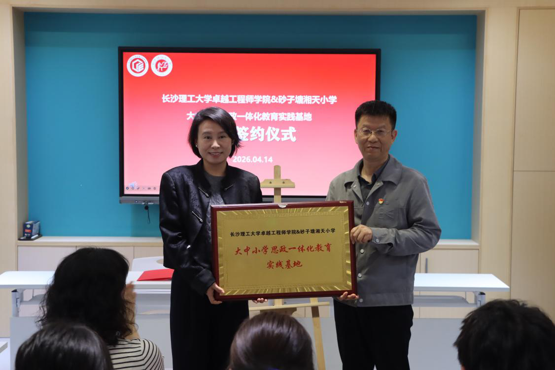4月14日下午,taptap点点体育卓越工程师学院与砂子塘湘天小学携手举行“大中小学思政一体化教育实践基地”挂牌签约仪式。卓越工程师学院党委副书记陈华、砂子塘湘天小学党支部副书记高志勇、德育副校长朱嘉共同出席活动。此次合作标志着两校在探索思政教育纵向贯通、有机衔接方面迈出实质性一步。