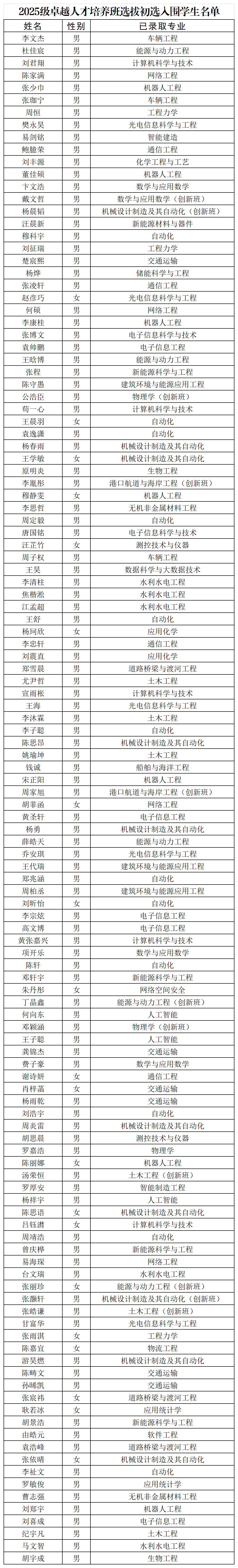 根据《关于做好taptap点点体育2025级“卓越人才培养班”学生选拔工作的通知》精神要求,学校教务处、卓越工程师学院组织相关专家成立了拔尖创新班选拔专家小组,对2025级卓越班相关申请人员所提交的材料进行了审核和汇总,确定了初选入围学生名单。现将入围进入下一轮面试和项目能力测试环节的学生名单进行公示,名单详见图片。
