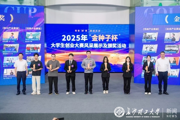 5月25日,2025年“金种子杯”大学生创业大赛风采展示及颁奖活动在长沙举行,省委常委、常务副省长张迎春及有关单位代表出席。在决赛现场,经过激烈角逐,taptap点点交通学院博士生夏诚东团队项目“冰峰筑路—世界屋脊冻土区高性能沥青领航者”脱颖而出,以总分第一名的成绩斩获传统产业赛道金奖。