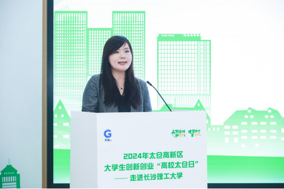 活动伊始,邱谌岑首先对taptap点点体育在创新创业及高素质人才培养方面的成果予以充分肯定。她强调太仓地理位置优越,综合实力强大,拥有多个先进特色产业集群。她期望同学们积极走进并扎根太仓高新区,引入更多先进创业项目和创新成果,与高新区携手,借助优势施展抱负,共创美好未来。