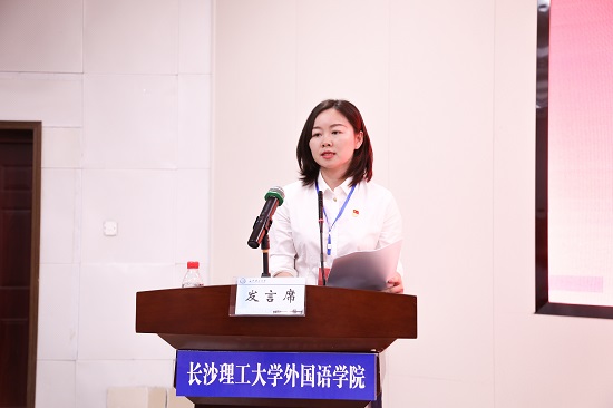 文丽丽代表第三届党委作了题为《聚焦创建“双一流”,实现高质量发展,为建设工程特色鲜明的高水平教学研究性学院而努力奋斗》的工作报告。报告对过往五年的工作进行了全面总结,指明在外国语学院党委的坚强领导下,党建引领、人才培养、学科专业建设、师资队伍、科研水平、社会服务、育人环境等方面均取得可喜成绩;总结了经验与不足,科学分析了新阶段面临的机遇与挑战,对未来五年的工作任务做出部署,提出“坚持人文性、创新性,走差异化、优势化的特色内涵发展之路,探索‘外语+X’人才培养新模式”的发展思路和“国内知名、省内一流,文工商贸结合、工程特色鲜明的高水平教学研究型学院”的建设目标,并提出“五力”的建设路径,即落实立德树人根本任务,强化协同育人,提升人才培养参与力;统筹交叉学科资源,强化工程特色,提升学科专业引领力;激发人才队伍活力,强化团队梯度,提升教学科研贡献力;建设湖湘文化国际传播前沿阵地,强化对外交流,提升社会服务影响力;弘扬“文化摆渡”精神,强化以文育人,提升干事创业凝聚力。报告强调要坚定不移推进党的全面领导,持续提升统揽全局能力、深入推进全面从严治党、切实强化干部履职担当、有效落实思想政治工作、坚决深化青年打底工程。