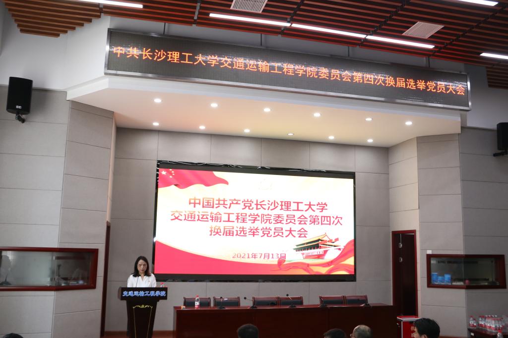学院党委书记孔伟红代表上届交通运输工程学院党委作了题为《立足新百年,定位双一流,为决胜建成“百强大学”贡献新力量》的工作报告和《党费收缴使用情况报告》。党委工作报告详细回顾了在过去的四年中,学院党委在学校党委的正确领导下,坚持党建引领发展、党建凝聚力量,团结带领全院各党支部、广大党员和师生员工,全面贯彻党的教育方针,各项事业特别是高水平人才队伍、国家一流专业建设等方面取得了显著成效,人才培养质量不断提高,学科专业建设稳步推进,学生创新创业能力与就业质量不断提高,国际交流与国际视野不断拓展,师资水平逐步提高,学院综合实力和核心竞争力显著增强,师生的获得感幸福感不断提升,学院在高质量发展的道路上迈出了坚实步伐。