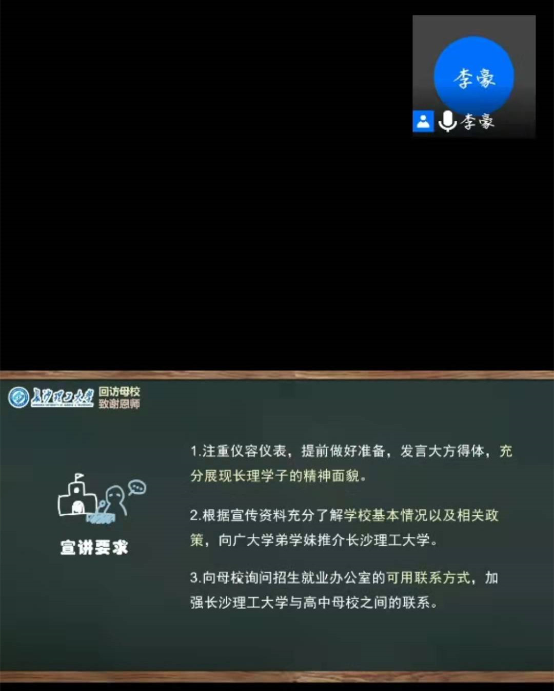 之后,李豪通过课件培训,介绍了此次活动的目的、内容、流程、要求、物资分配和相关注意事项等,提醒同学们在活动实践期间做好充足准备,严格按照疫情防控要求开展。同时,他对湖南省高校扩招政策以及因新高考改革而发生的分组变化做了讲解。