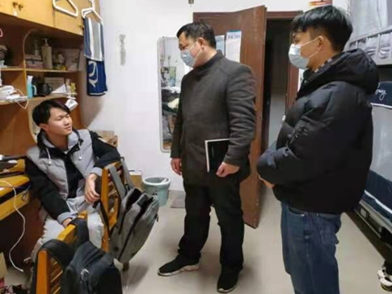 随着春季学期开学,同学们陆续返校。为进一步做好疫情防控常态化阶段学生教育管理工作,了解学生安全返校情况、身体健康状况,2月20日下午,电气学院党委副书记任艮丰带领全体学工办老师共同前往学生寝室慰问返校学生。